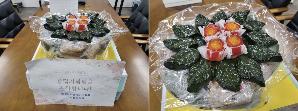 올해도 어김없이 (사)경남인공지능ICT협회에서 정성 가득 담긴 축하 떡케이크를 보내주셨습니다!